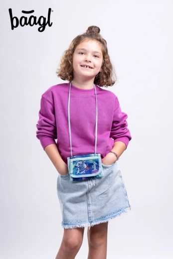 Portofel stilat la gât BAAGL cu motivul Aurora oferă depozitare sigură pentru mărunțiș, carduri și chei și purtare confortabilă datorită șnurului reglabil cu siguranță. Fabricat din material reciclat rezistent certificat GRS, are închidere cu arici, buzunăraș separat pentru monede și etichetă pentru nume practică pentru identificare ușoară.