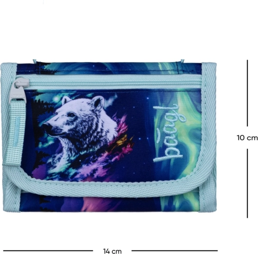 Căutați un portofel ușor și sigur pentru copii și adulți? Portofelul la gât BAAGL Aurora combină confortul, rezistența și designul atrăgător cu aurore polare și urs. Datorită curelei reglabile cu siguranță, poate fi purtat la gât, având valorile mereu aproape și mâinile libere.