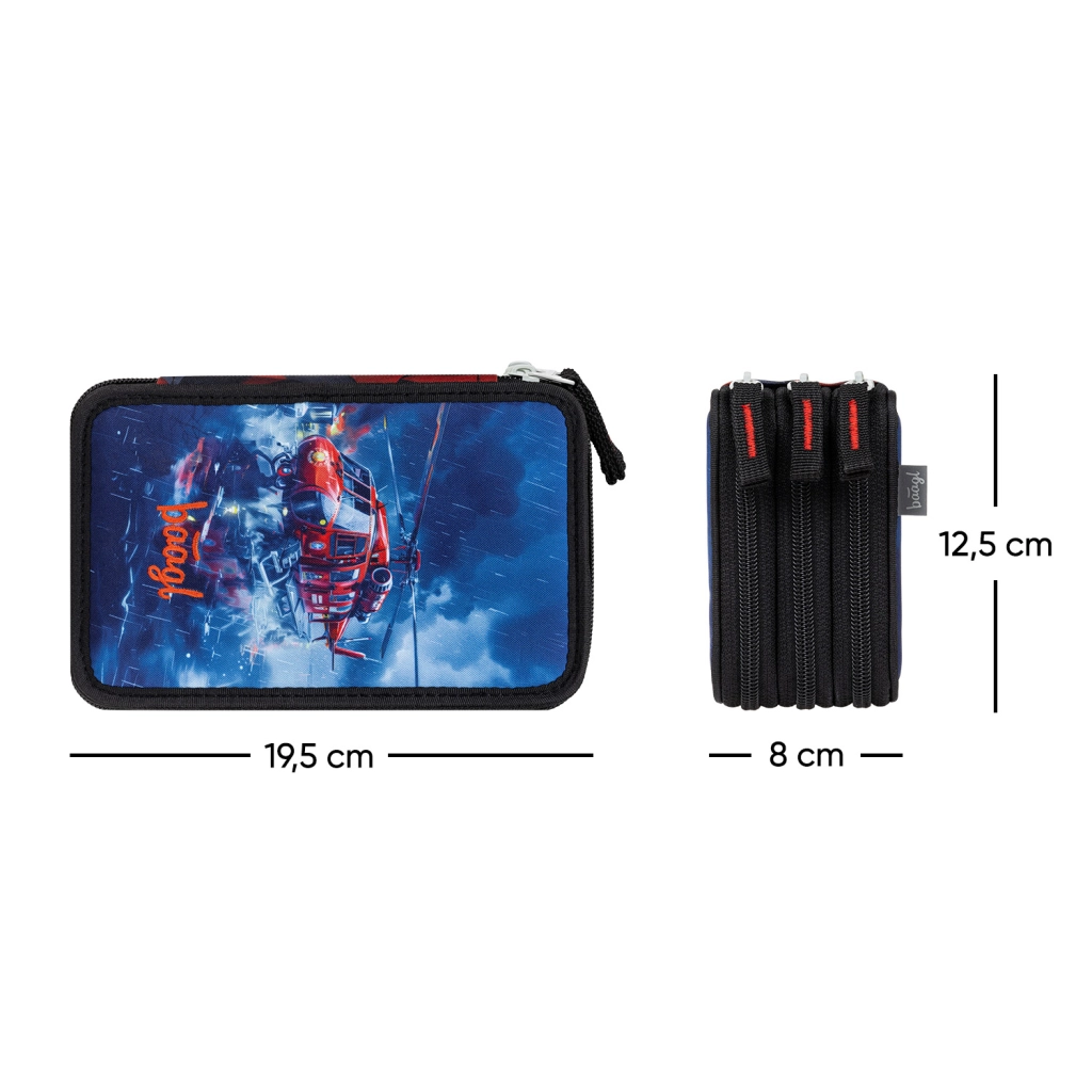 Penar școlar cu trei compartimente, extra încăpător, cu motivul salvatorilor, oferă spațiu suficient pentru toate instrumentele de scris, benzi elastice și pentru creioane cerate/groase și markere și fermoare fiabile YKK. Datorită cotorului întărit se închide și se poartă ușor. Fabricat în conformitate cu standardul GRS. Penarul este fără conținut.