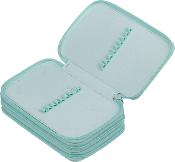 Fermoarele YKK de calitate asigură o închidere cursivă, iar cotorul întărit facilitează manipularea chiar și când penarul este plin.
