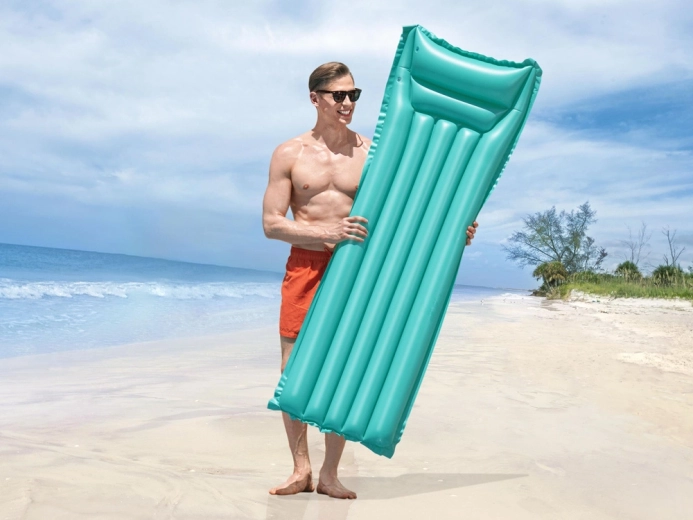Salteaua gonflabilă BESTWAY pentru o persoană este excelentă pentru relaxare liniștită pe luciul apei. Datorită dimensiunilor universale de 183 × 69 cm, oferă spațiu confortabil pentru plajă și odihnă. Structura cu mai multe camere și perna integrată susțin corpul și sporesc stabilitatea pe apă.