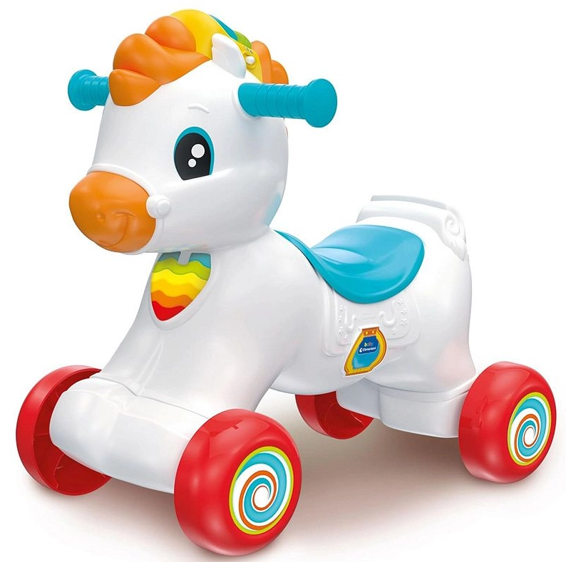 Căluțul interactiv 3în1 CLEMENTONI crește odată cu copilul tău: de la balansarea sigură, la primii pași cu antemergătorul și până la deplasarea independentă ca împingător. Baza lată și roțile stabile oferă o plimbare confortabilă și sigură, iar mânerele ergonomice se prind ușor de mânuțele mici.