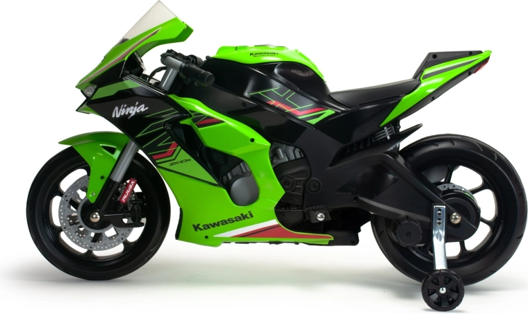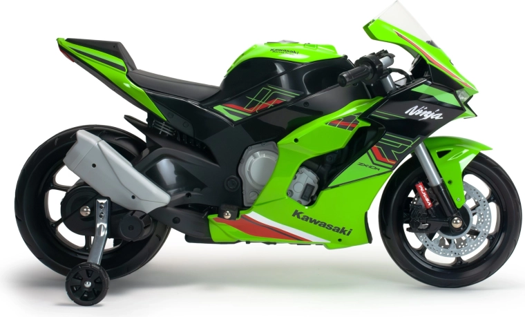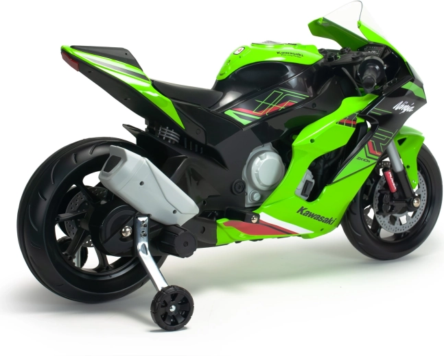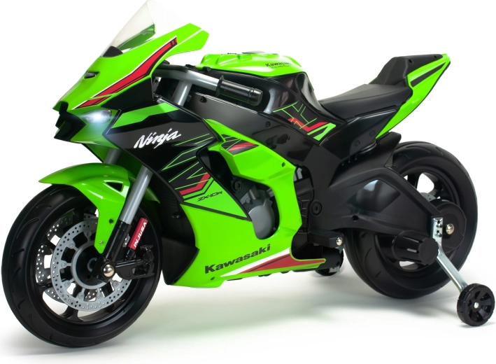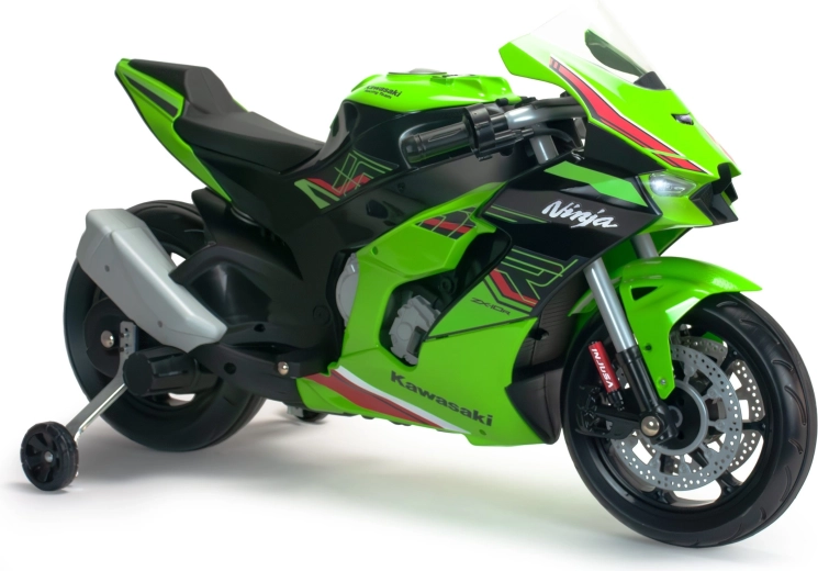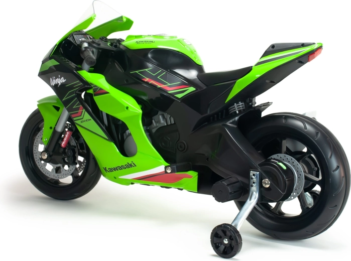 Motocicleta pentru copii INJUSA Kawasaki Ninja 12V oferă un aspect realist, condus în siguranță și control facil. Datorită propulsiei electrice de 12V, roților auxiliare de stabilizare și farurilor LED, micii piloți se vor bucura de multă distracție și dezvoltarea abilităților, cu accent maxim pe siguranță și stabilitate.