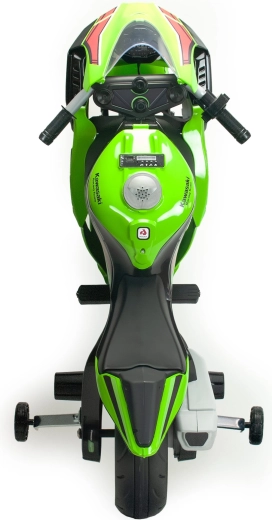Licență oficială KAWASAKI cu carene de curse, parbriz și detalii ale frânelor pentru un aspect cât mai fidel și entuziasmul micilor motocicliști.