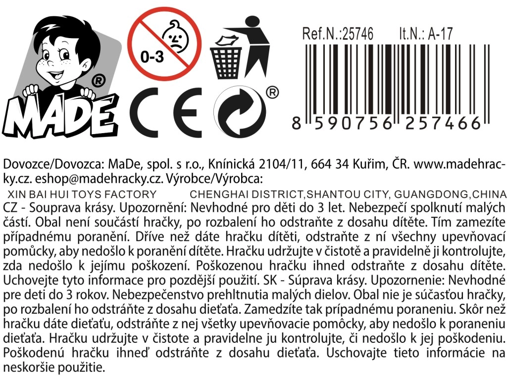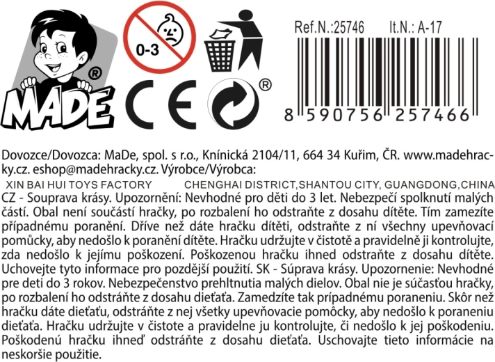 Încântați micile cochete cu acest set de frumusețe pentru copii, ideal de la 3 ani. Ambalaj compact cu dimensiuni de 14 × 20 × 3 cm, design simplu și o singură variantă de culoare, care asigură utilizare ușoară și multă bucurie în joacă.
