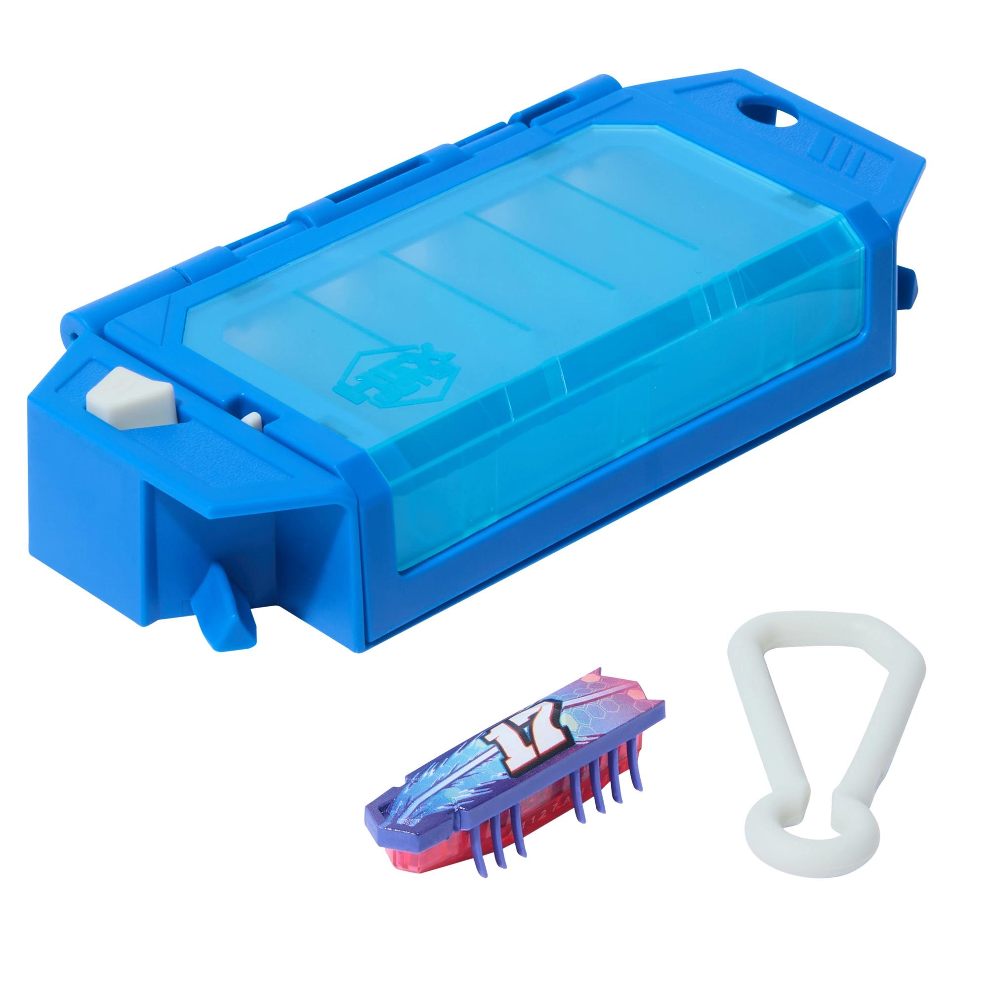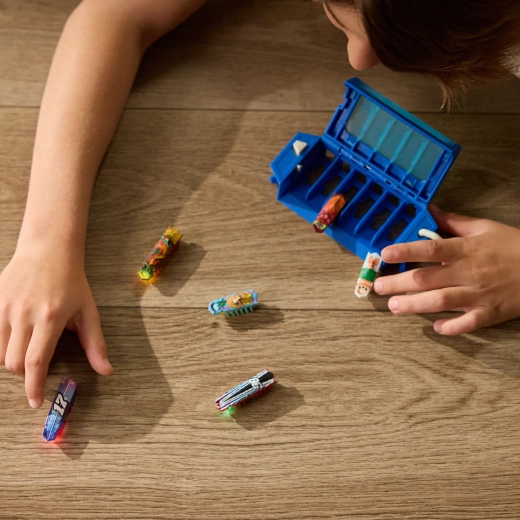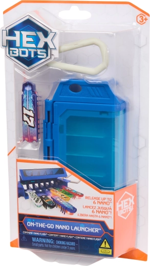 Ingeniosul On‑The‑Go Launcher servește ca husă și stație de lansare într‑un singur produs. Puteți depozita în el până la 6 roboți Nano, iar cu un singur buton deschideți ușița și îi lansați pe toți deodată – ideal pentru curse și experimente cu traiectorii. Setul se poate combina cu alte seturi și obstacole HEXBOTS Nano pentru a construi propriile labirinturi și piste de curse.