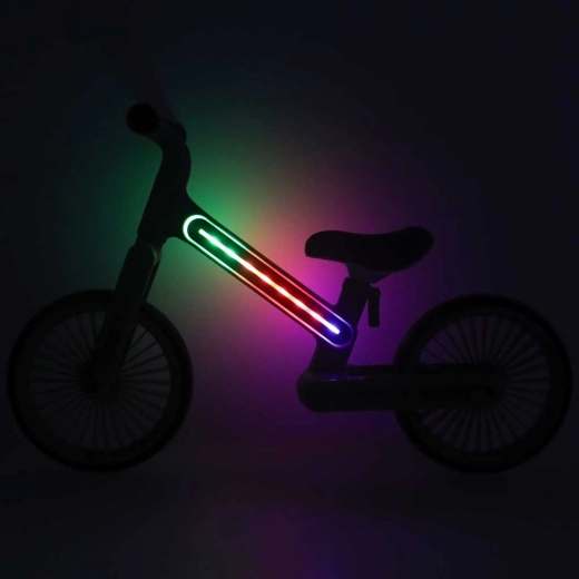 Sistemul LED integrat în cadru, cu 20 de programe de iluminare (culori și animații), mărește vizibilitatea în plimbările de seară și transformă fiecare ieșire într-o experiență. Butonul de control este amplasat sub cadru.