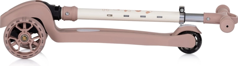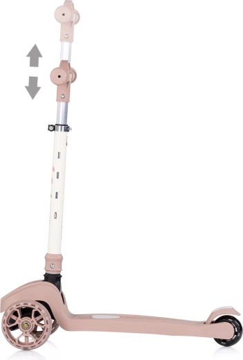 Trotineta pentru copii CHIPOLINO Moxie, în culoarea roz, oferă un design stabil cu trei roți, ghidon reglabil pe înălțime și roți cu LED-uri colorate pentru o plimbare sigură și distractivă. Datorită construcției pliabile, se transportă și se depozitează ușor; nu lipsesc frâna la roata din spate și efectele luminoase și sonore pentru și mai multă bucurie la mers.