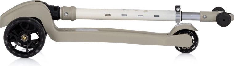 Pentru o siguranță sporită, roata din spate este echipată cu frână la picior, iar toate roțile au iluminare LED colorată, care mărește vizibilitatea și adaugă o notă jucăușă deplasării. Funcțiile muzicale și luminoase transformă fiecare plimbare într-o aventură distractivă (funcționează cu 3× AAA, bateriile nu sunt incluse).