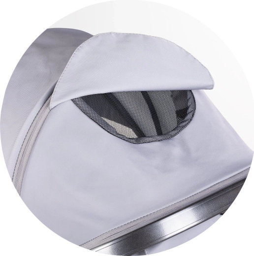 Șezut reversibil cu fața spre sau contra direcției de mers, spătar reglabil în 3 poziții și mâner reglabil pe înălțime facilitează utilizarea zilnică. Siguranța este asigurată de centura în 5 puncte cu căptușeală, frâna spate și bara frontală detașabilă. Cupola mare cu parasolar detașabil protejează de intemperii, iar coșul mare (capacitate 2 kg) găzduiește toate lucrurile necesare.