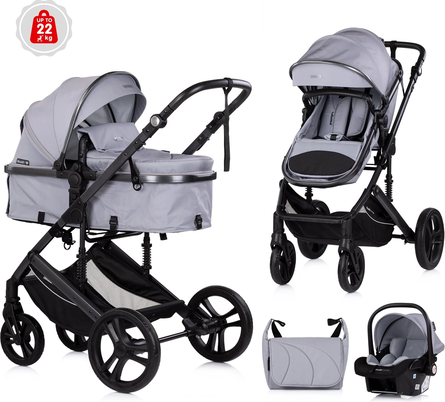 CHIPOLINO Amore 2în1 Platinum este un cărucior universal care crește odată cu copilul. Datorită transformării ușoare a părții sport în landou, este potrivit încă de la naștere (până la 6 luni și 9 kg în modul landou) și ulterior ca variantă sport până la 22 kg. Construcția ușoară și durabilă cu suspensie oferă o plimbare lină atât în oraș, cât și în parc.