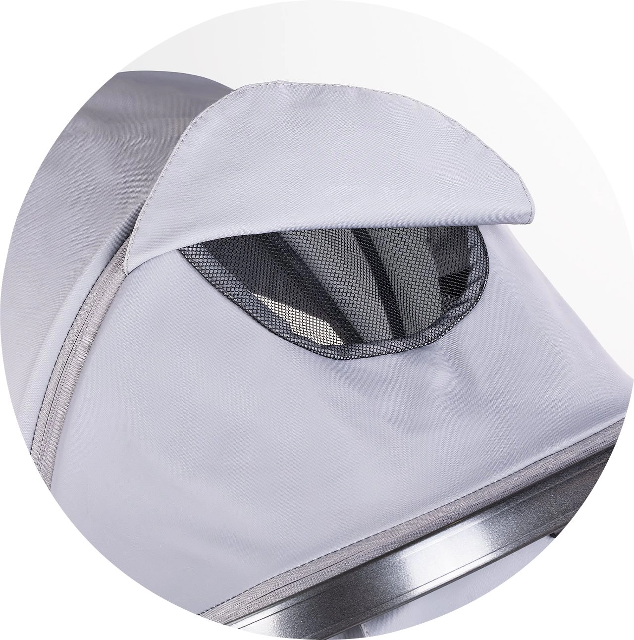 - Detalii practice – coș mare, mâner reglabil, cupolă mare cu parasolar.