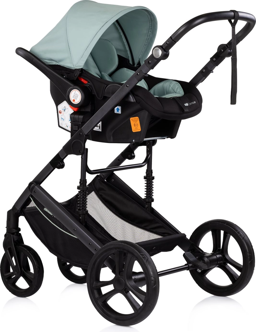 Părinții vor aprecia unitatea reversibilă, mânerul reglabil pe înălțime cu înveliș de calitate și coșul de depozitare încăpător pentru tot ce este necesar. Călătoria sigură și confortabilă este asigurată de centura în 5 puncte cu pernuțe, bara de protecție detașabilă și frâna pe roțile din spate, fiabilă, cu mecanism segmentat. Căruciorul respectă standardele europene stricte EN1888-1 și EN1888-2.