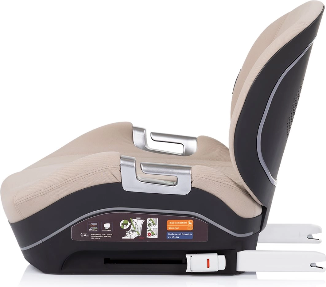 Scaunul cu formă ergonomică, tapițeria moale, cotierele și spătarul respirabil, detașabil oferă confort chiar și pe drumuri mai lungi. Indicatorii verzi de siguranță vă confirmă vizual blocarea corectă a conectorilor ISOFIX – un clic și sunteți gata de drum. Husa elegantă în culoarea Latte, cu accente metalice luxoase, se curăță ușor și completează aspectul modern al interiorului mașinii.