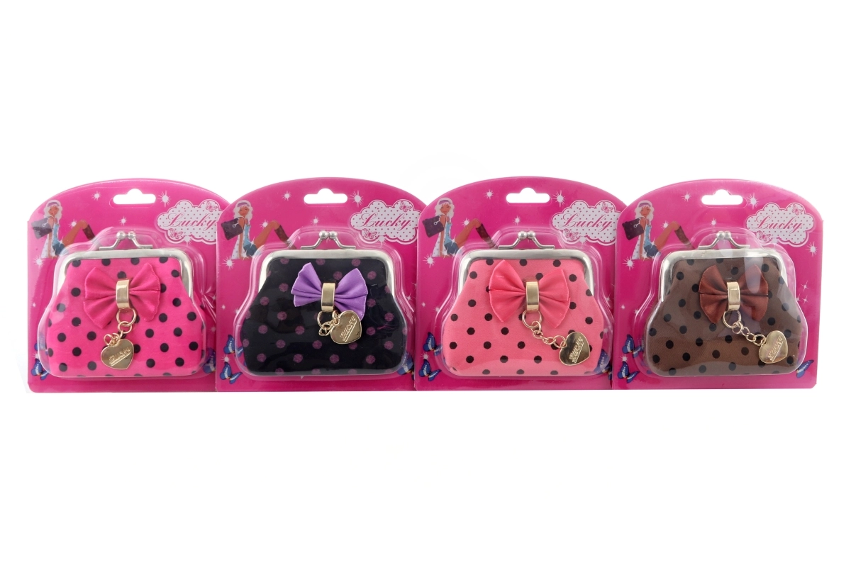 Portofel textil elegant cu fundiță romantică și motiv delicat de inimioară, ideal pentru monede și bancnote. Dimensiunile compacte încap în orice geantă, iar designul stilat te va încânta zi de zi. Ușor, practic și feminin – accesoriul perfect pentru orice ocazie.