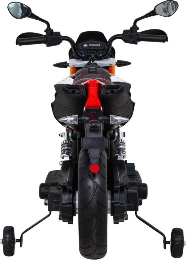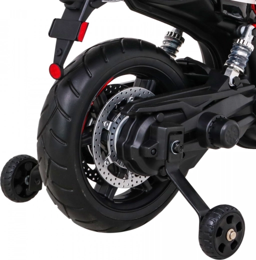 Panoul multimedia cu MP3, SD, AUX și USB permite redarea muzicii preferate. Elemente practice precum cheia de pornire, indicatorul de încărcare, farurile LED față și spate sau cricul rabatabil ușurează utilizarea zilnică. Pentru o stabilitate sporită sunt incluse și roți ajutătoare. Greutatea maximă admisă este de 30 kg, astfel încât motocicleta „crește” odată cu copilul.