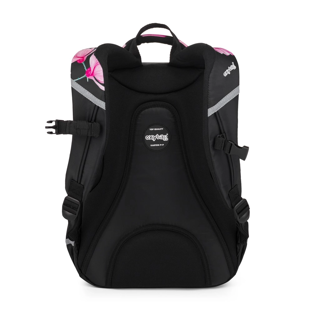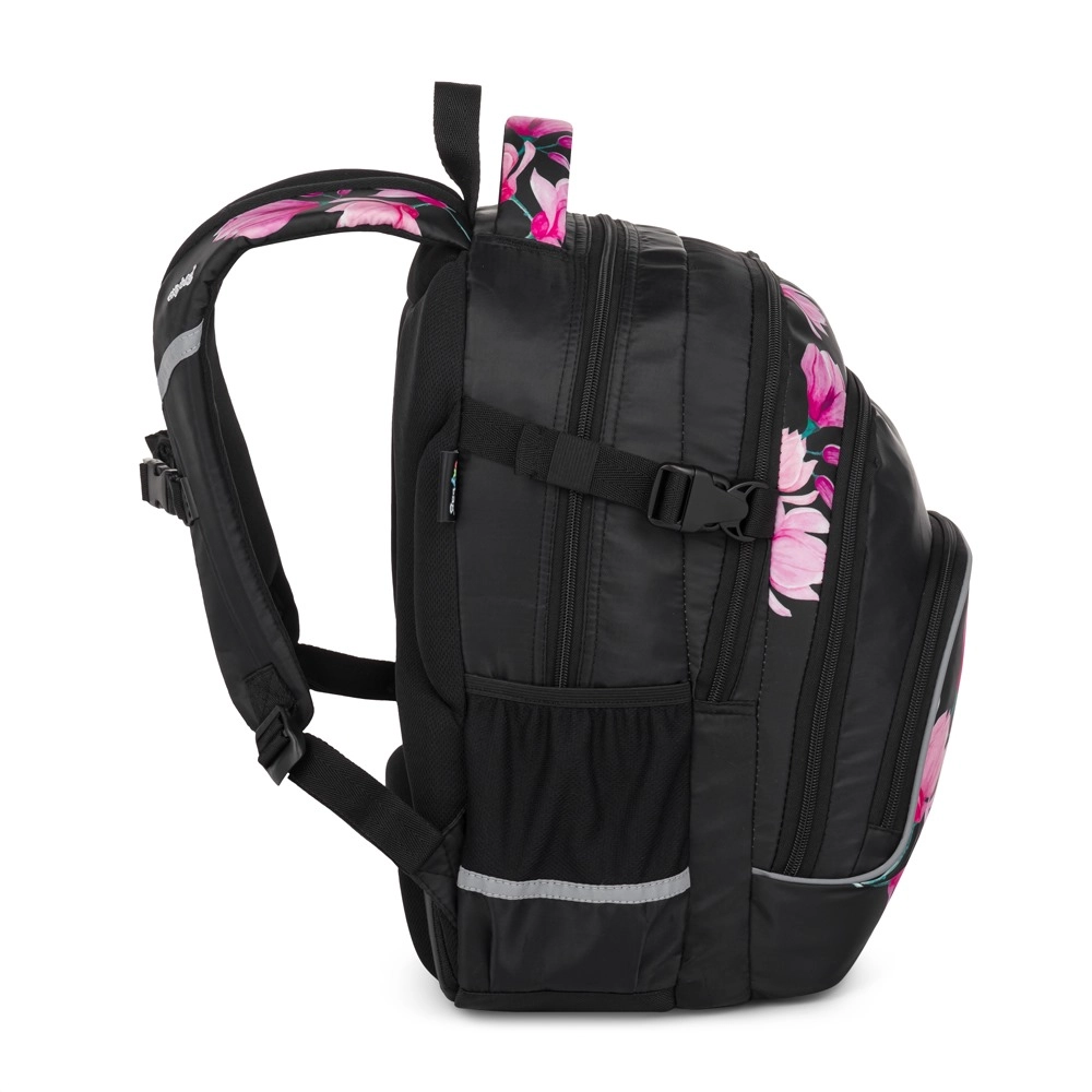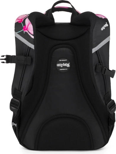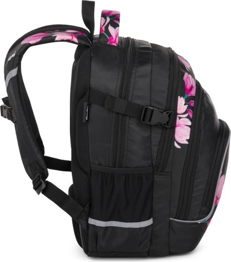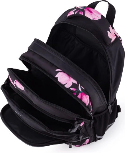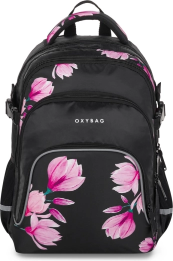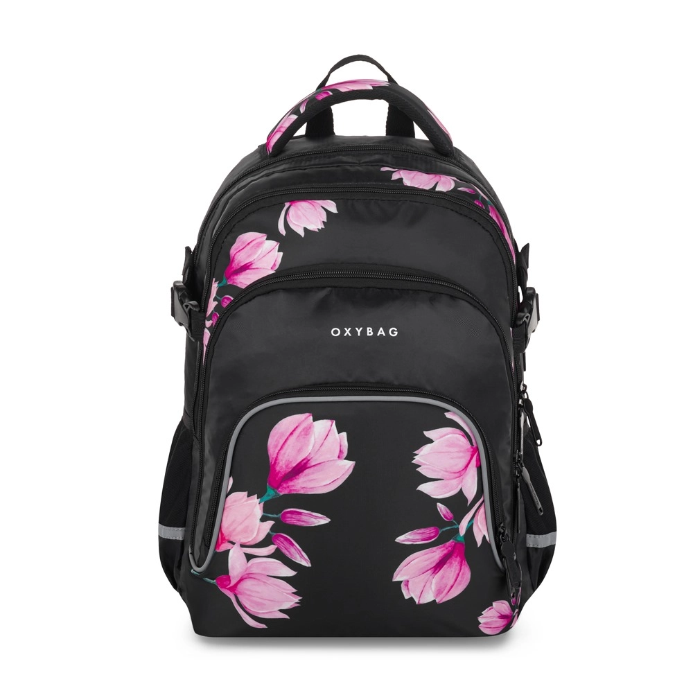 OXYBAG Scooler Magnolie este un partener de încredere pentru școală și timp liber. Trei compartimente spațioase găzduiesc manuale, caiete și gustarea, buzunarele frontale cu organizator mențin ordinea în lucrurile mărunte, iar compartimentul interior protejează laptopul. Buzunarul lateral este ideal pentru sticla cu apă, în timp ce suportul practic pentru chei sau card economisește timp la căutările zilnice.