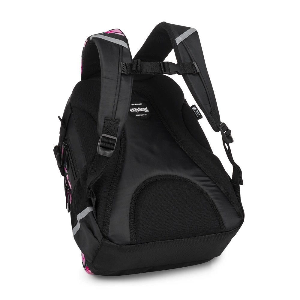 Pentru purtare confortabilă, rucsacul este echipat cu spate anatomic, respirabil, bretele de umăr reglabile și curea de piept, datorită cărora stă perfect chiar și la drum mai lung. Fundul întărit, impermeabil protejează conținutul de umezeală și murdărie, iar elementele reflectorizante sporesc vizibilitatea copiilor pe drumul spre și de la școală.