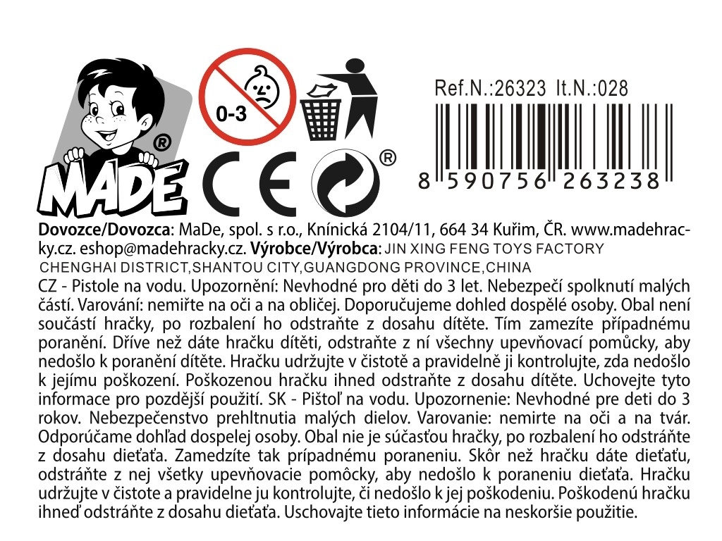 Bucură-te la maximum de vară cu acest pistol de apă din plastic cu lungimea de 31 cm. Ideal pentru copii de la 3 ani, ușor de folosit și fără baterii. Disponibil într-o singură culoare și în 2 variante de execuție, pregătit pentru distracție instantanee în grădină, la piscină sau în vacanță.