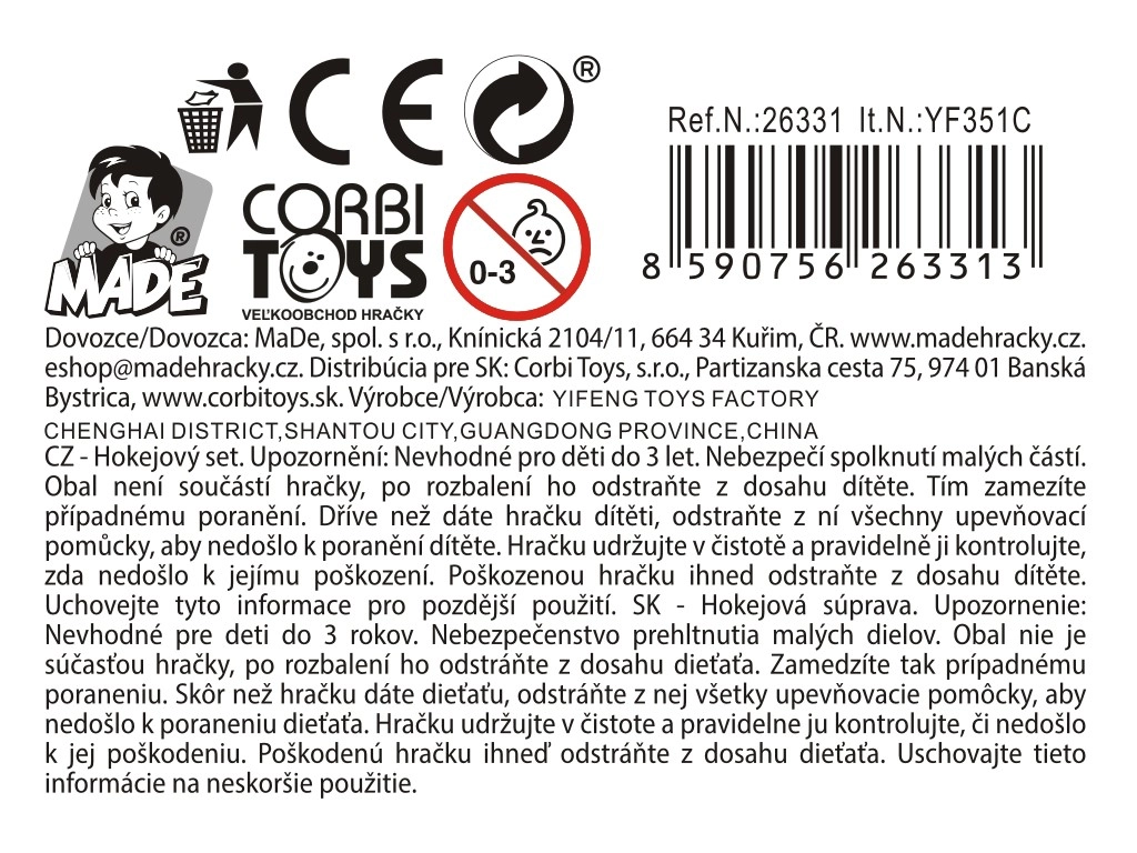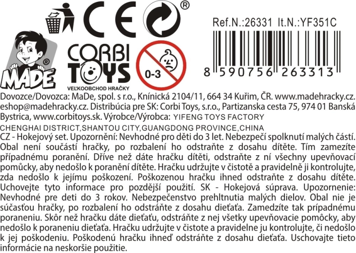 Setul include o minge portocalie și un puc negru, astfel încât copiii pot încerca jocul pe diferite suprafețe și își pot dezvolta abilități diverse.