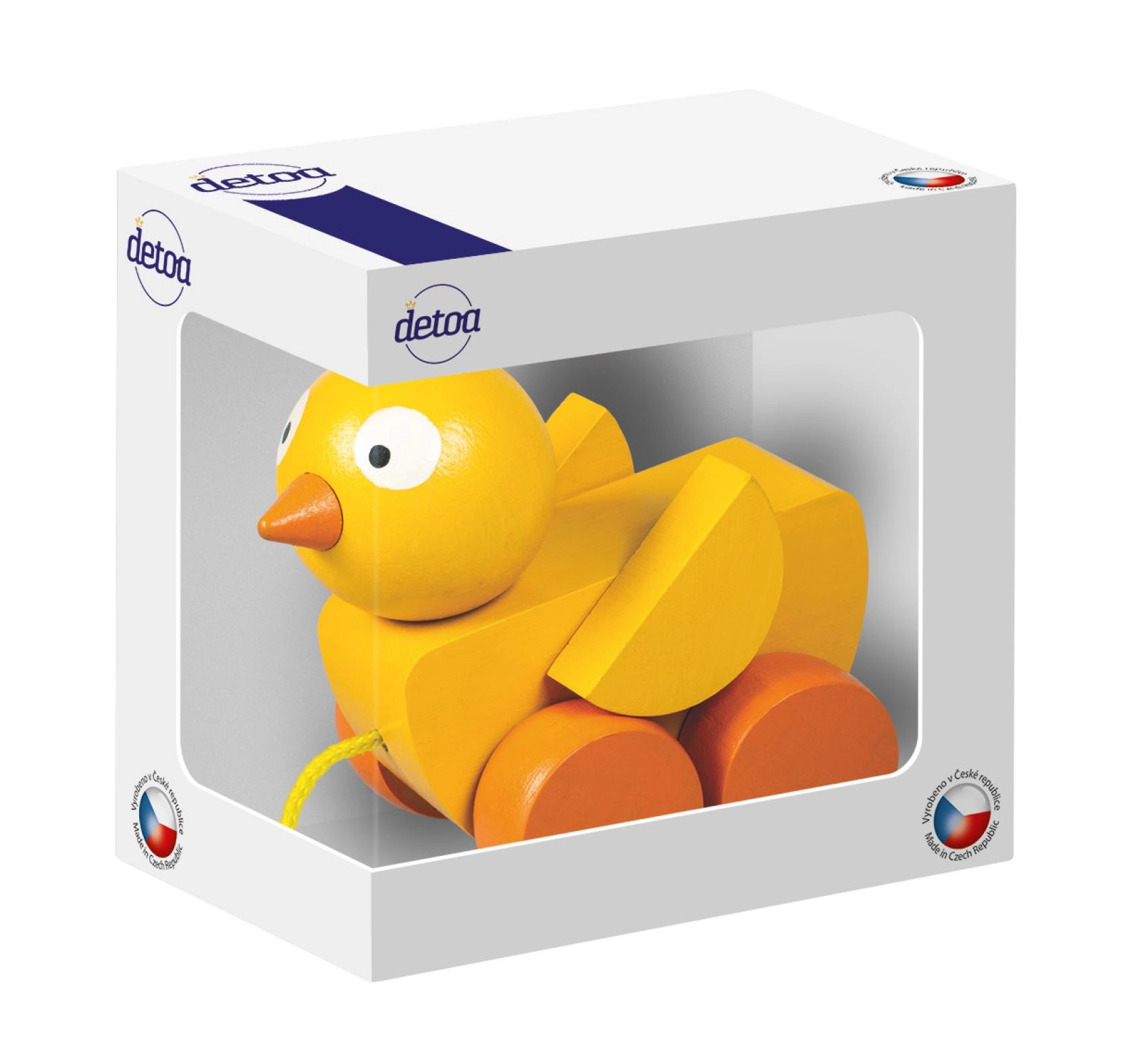 Puiul de tras din lemn este o jucărie clasică ce motivează copiii să se miște și să descopere lumea. Datorită dimensiunilor sale compacte, se ține ușor în mână și este perfect atât pentru joaca acasă, cât și pentru primele plimbări prin casă.