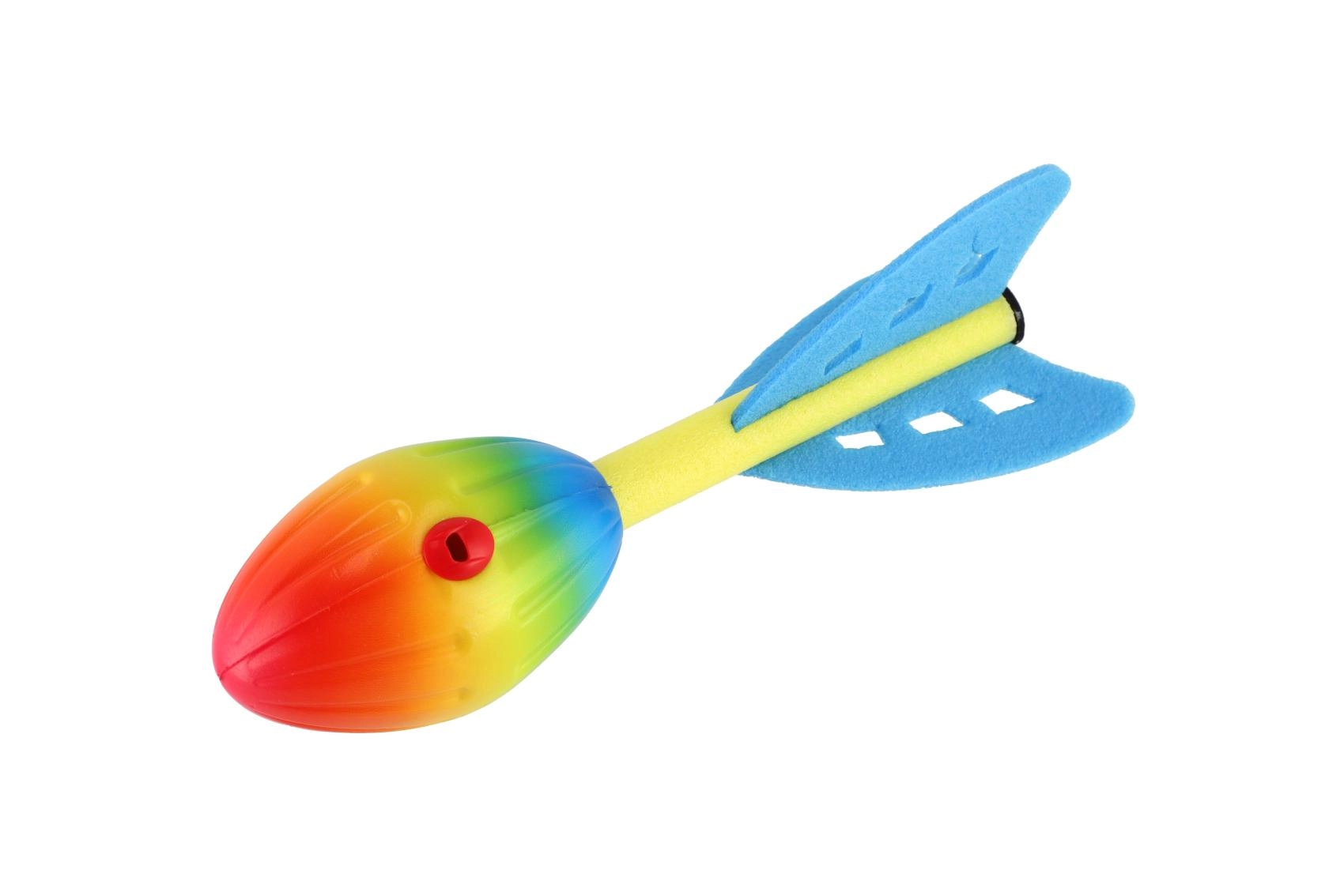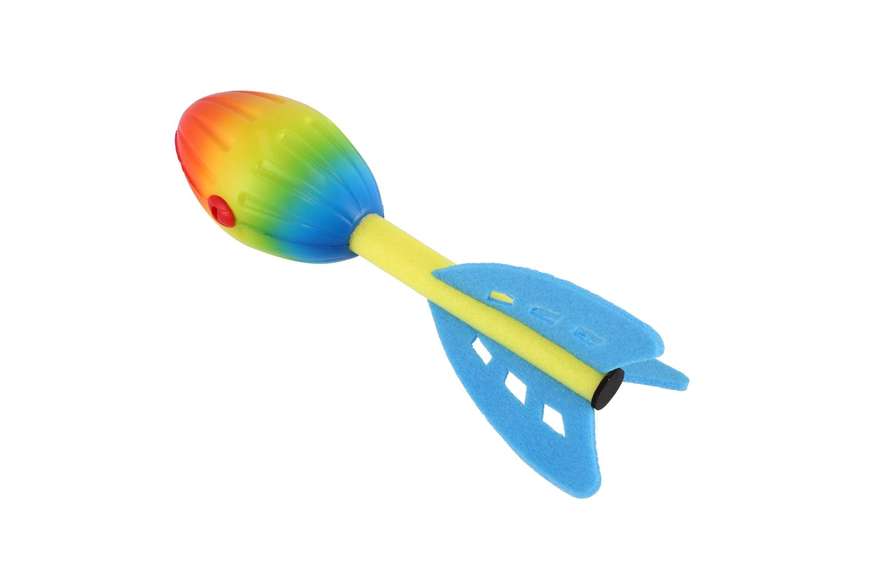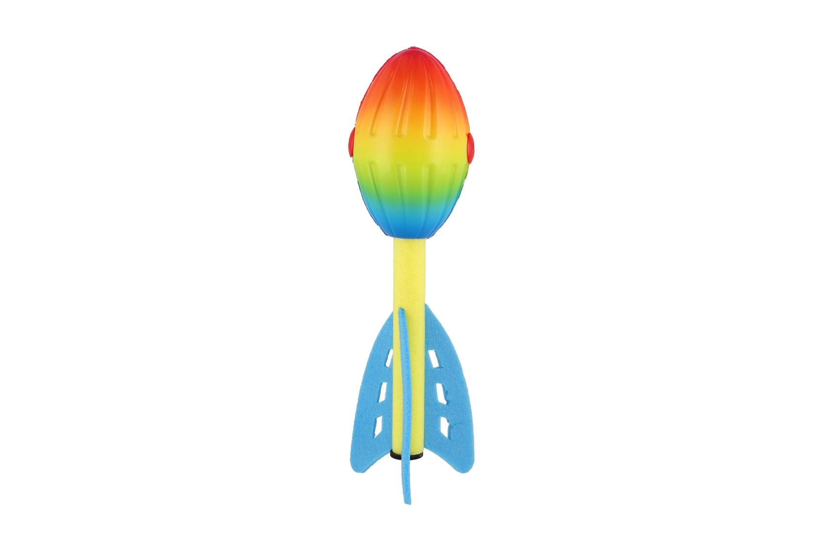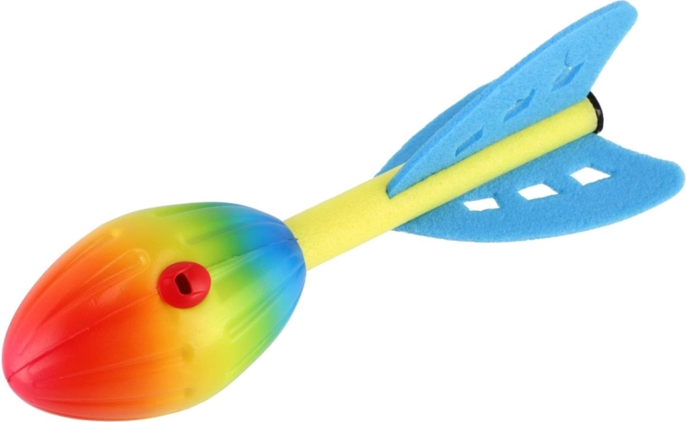 Ușoara și sigură rachetă de aruncat din spumă, fluierătoare, cu lungimea de 25 cm, aduce copiilor multă distracție în jocurile în aer liber. Datorită formei aerodinamice zboară departe și stabil, iar aripioarele moi din spumă sporesc siguranța la impact. În plus, în timpul zborului emite un sunet fluierător, care amplifică distracția și îi motivează pe copii la joacă.