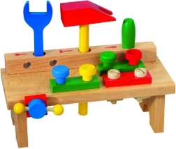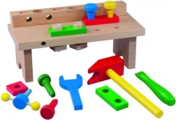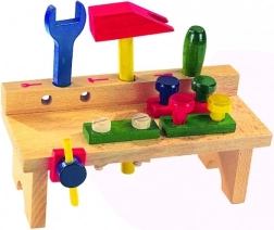 Masa de lucru din lemn cu unelte Detoa este o bază excelentă pentru micii meșteri. Copiii învață manipularea de bază a instrumentelor, își antrenează coordonarea mână-ochi și își dezvoltă gândirea logică prin înșurubare și asamblare.