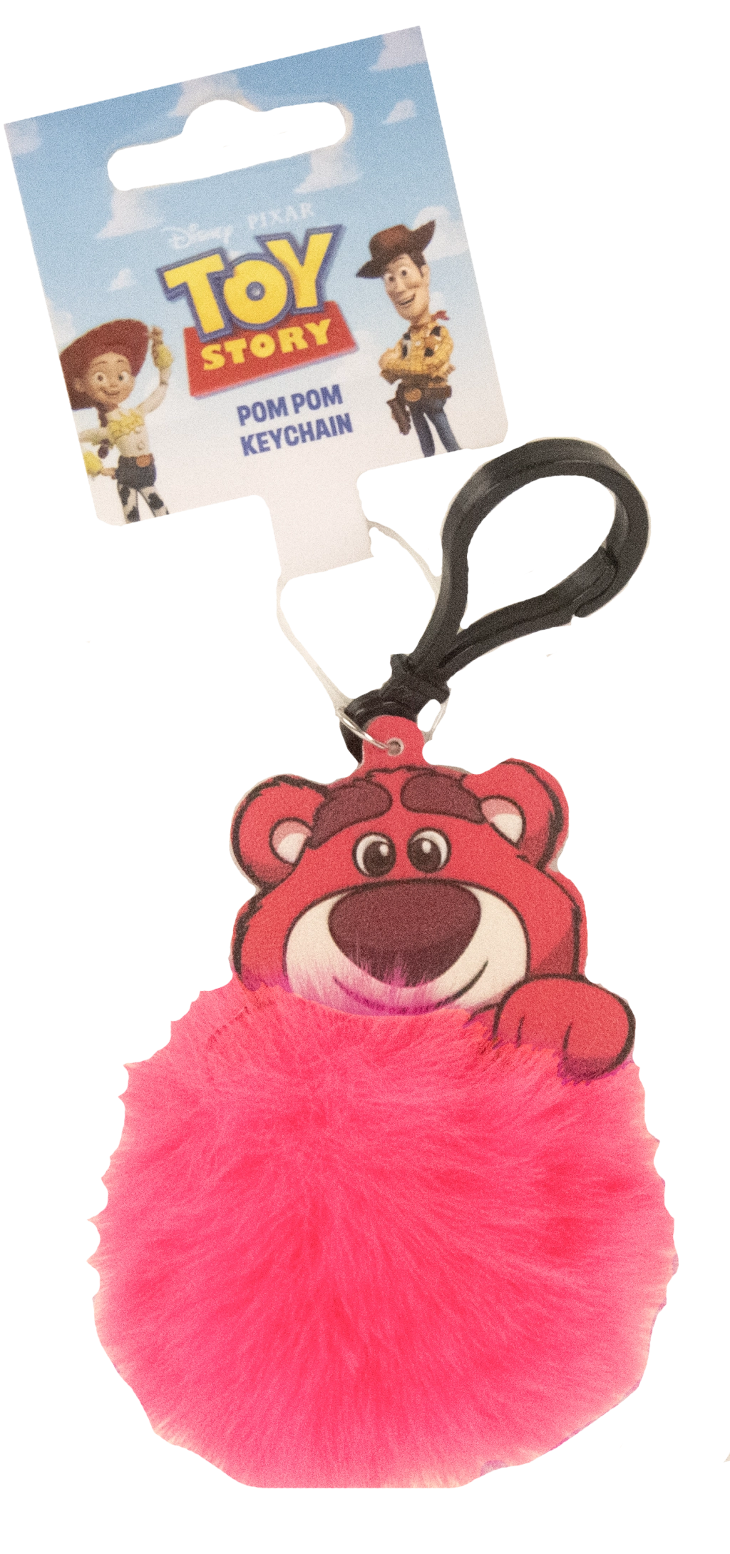 Un breloc stilat cu ursulețul Lotso din TOY STORY care îmbină designul jucăuș cu funcționalitatea. Căpșorul 3D din plastic al lui Lotso și pompomul roz, moale creează un accesoriu atrăgător pentru chei, rucsac sau geantă. Datorită carabinierei, îl poți prinde ușor oriunde. Licența oficială garantează calitate și aspect autentic.