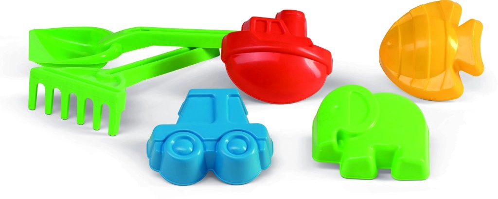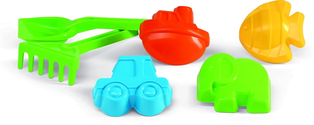 Acest set universal de forme cu lopățică și greblă este ideal pentru groapa de nisip și pentru plajă. Copiii pot săpa, aduna și modela cu ușurință nisipul în motivele preferate – mașinuță, vapor, elefant și peștișor. Construcția ușoară din plastic este confortabilă pentru mâinile mici ale copiilor și rezistă la joacă intensă.