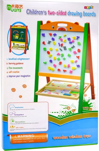 Această unealtă educațională versatilă îmbină jocul creativ cu învățarea. Copiii pot scrie, desena, forma cuvinte din litere magnetice și exersa calculul cu ajutorul cifrelor și semnelor magnetice. Designul cu două fețe permite alternarea rapidă a activităților, menținând atenția și entuziasmul.