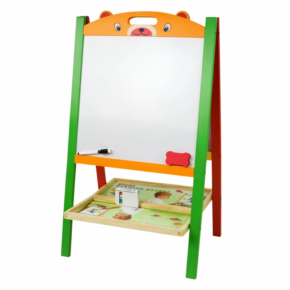 Descoperă o cale distractivă de învățare cu această tablă dublă 2‑în‑1 din lemn – pe o parte suprafață albă magnetică pentru scris cu marker lavabil și aranjat litere și cifre, iar pe cealaltă tablă clasică pentru cretă pentru desen. Construcția stabilă din lemn, accesoriile bogate și învățarea prin joc susțin motricitatea fină, creativitatea și primele abilități matematice și lingvistice.