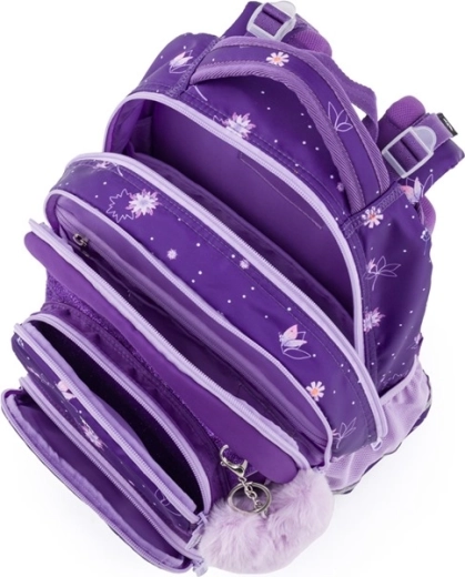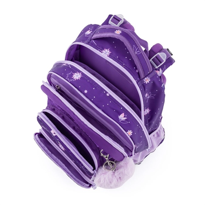 Siguranța este sporită de numeroase elemente reflectorizante, iar rezistența de baza întărită, impermeabilă și fermoarele de calitate. Setul este completat de un penar cu un singur etaj pentru depozitarea clară a instrumentelor de scris și un săculeț ușor pentru echipament sportiv în același design floral. Alegerea ideală pentru ciclul primar și gimnazial.