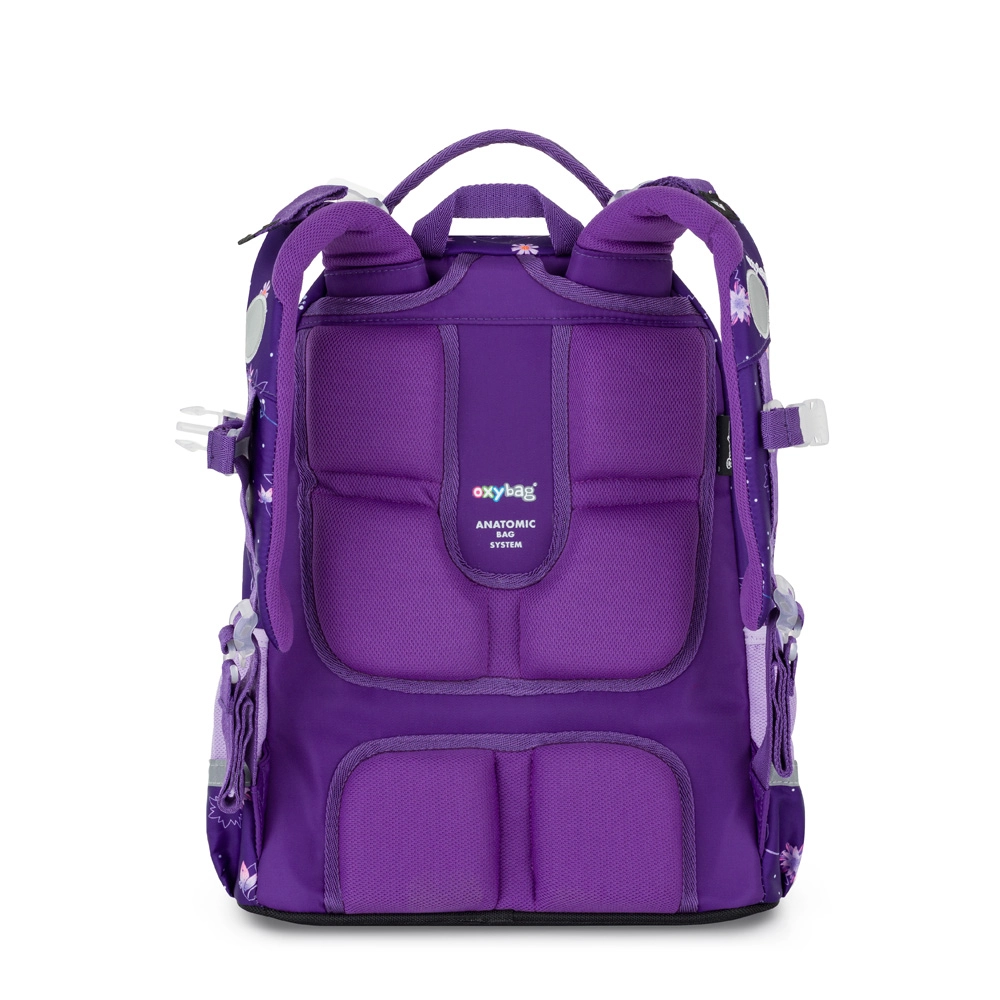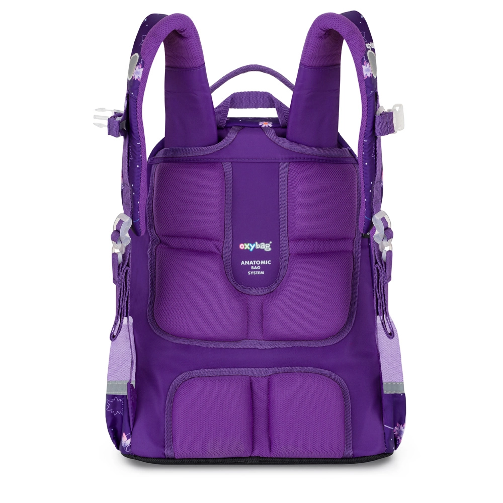 Avantajosul set școlar din 3 piese OXY Jumper Flowers combină un rucsac ergonomic cu un penar cu un singur etaj și un săculeț pentru echipament sportiv într-un design asortat. Rucsacul oferă spate modelat anatomic, bretele căptușite și reglabile cu curea de piept, două compartimente spațioase, buzunar frontal pentru gustare, buzunare laterale din plasă pentru sticlă și bază întărită impermeabilă. Datorită elementelor reflectorizante, vizibilitatea copiilor pe drumul spre școală este sporită.