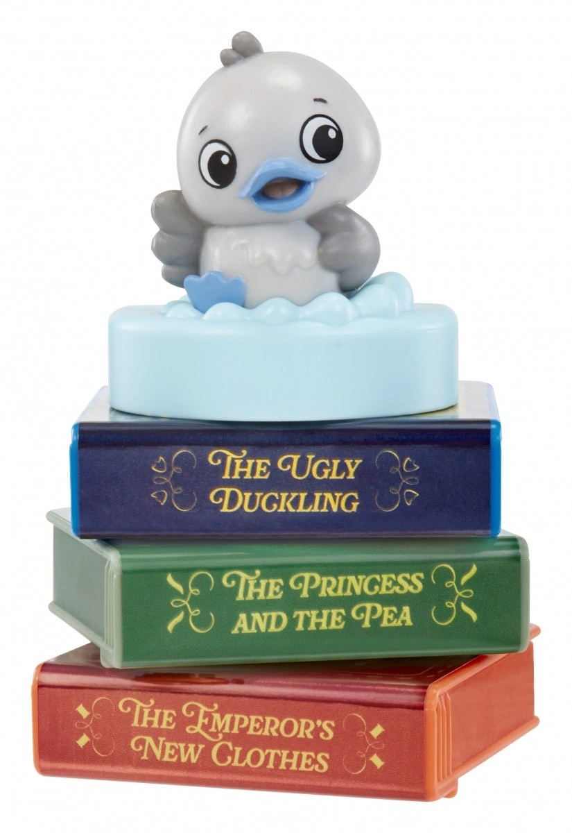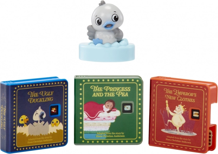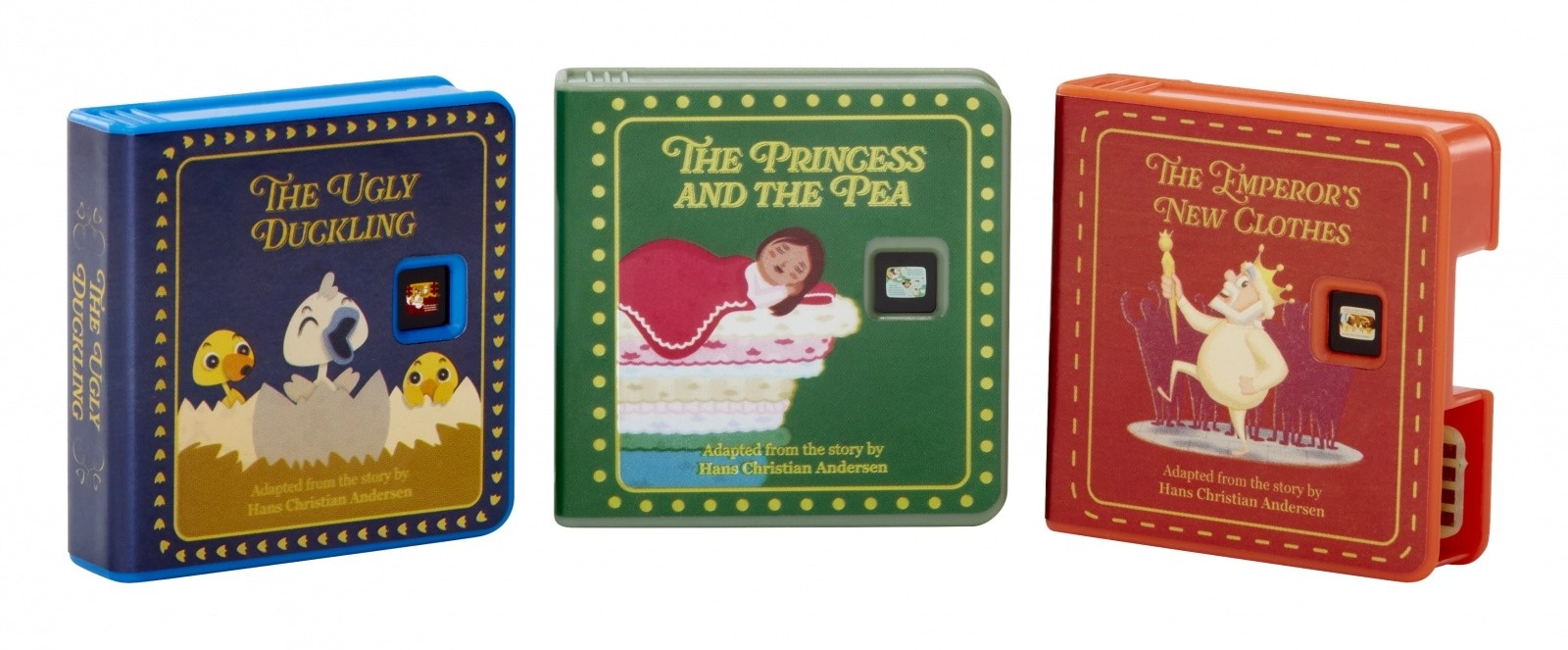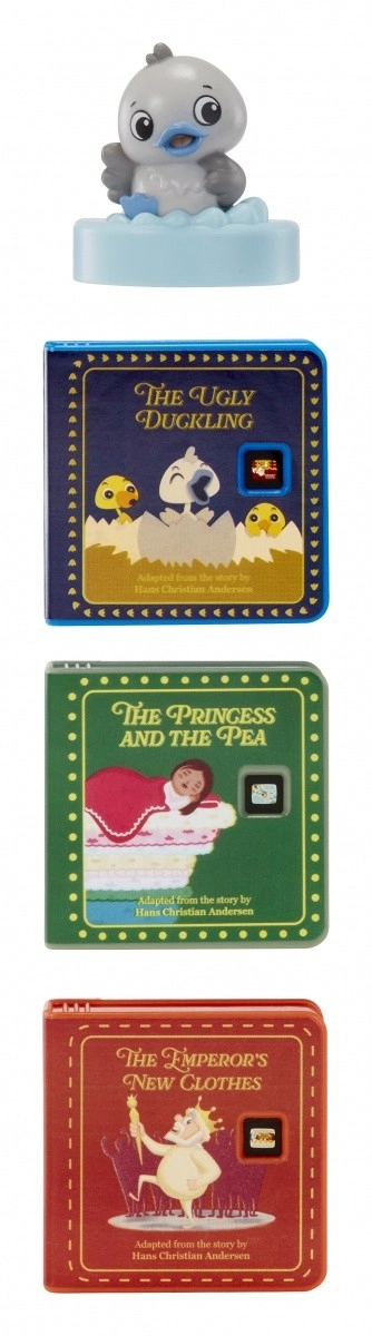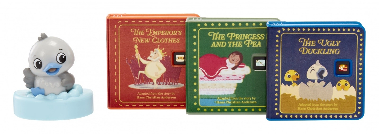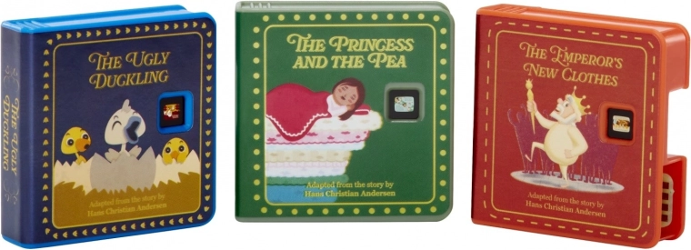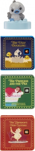 În pachet găsești 3 povești clasice: Rățușca cea urâtă, Prințesa și bobul de mazăre și Hainele cele noi ale împăratului, plus o figurină rațiță din Rățușca cea urâtă, care, în modul lampă, creează efecte luminoase suplimentare. Biblioteca de povești extensibilă oferă titluri suplimentare ce pot fi cumpărate separat. Distanța recomandată de proiectare este de 0,6–1,8 m pentru o imagine clară și lizibilă.
