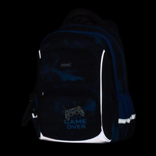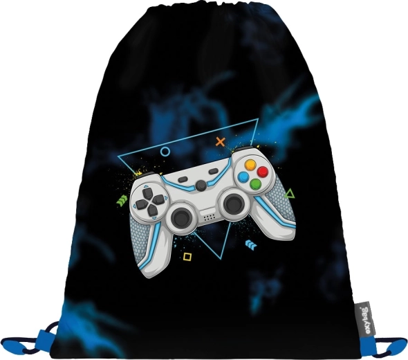 Designul cu motiv Gamer include rucsac, penar cu un singur etaj și săculeț pentru sport, într-o prezentare asortată, cu elemente reflectorizante pentru vizibilitate sporită.