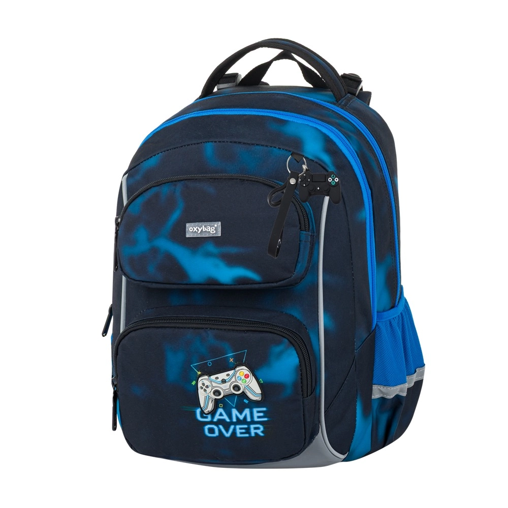 Setul școlar OXY Jumper Gamer 3 în 1 este conceput pentru confortul zilnic și siguranța copiilor de clasele primare. Rucsacul robust cu motiv de gaming dispune de două compartimente pentru manuale și caiete, buzunar frontal clar organizat pentru cutia de gustare și buzunare laterale deschise pentru sticlă. Datorită spatelui cu formă anatomică, bretelelor de umăr amortizate și reglabile, bretelelor de compresie și curelei toracice, rucsacul asigură o distribuție corectă a greutății și o purtare confortabilă.