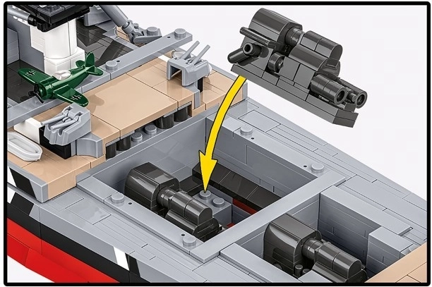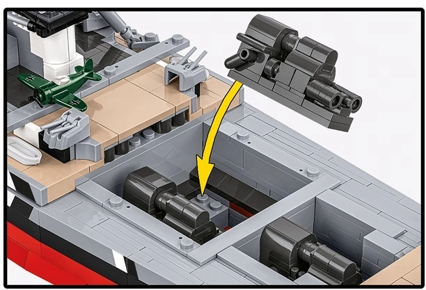 O icoană a istoriei navale, modelul BISMARCK oferă o experiență monumentală atât la construcție, cât și la expunere. Datorită proporțiilor fidele, suprastructurii detaliate și armamentului redat cu acuratețe, iese în evidență în orice colecție. Toate marcajele și detaliile sunt imprimate durabil direct pe piese, astfel încât modelul își păstrează aspectul impecabil pentru mulți ani.