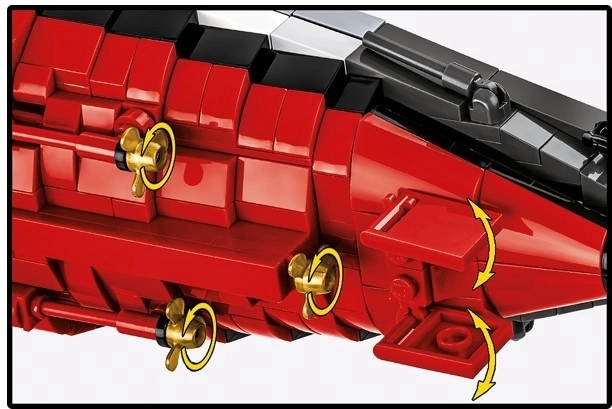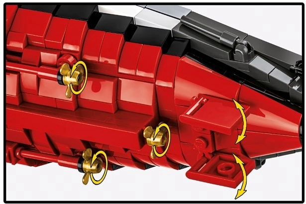 Setul combină funcții realiste (turele rotative, elemente mobile, părți detașabile ale sistemului de propulsie) cu o construcție ingenioasă și un manual intuitiv, datorită căruia chiar și un proiect atât de mare rămâne fluent și plăcut. Este inclus un suport elegant cu plăcuță pentru o expunere sigură și reprezentativă.
