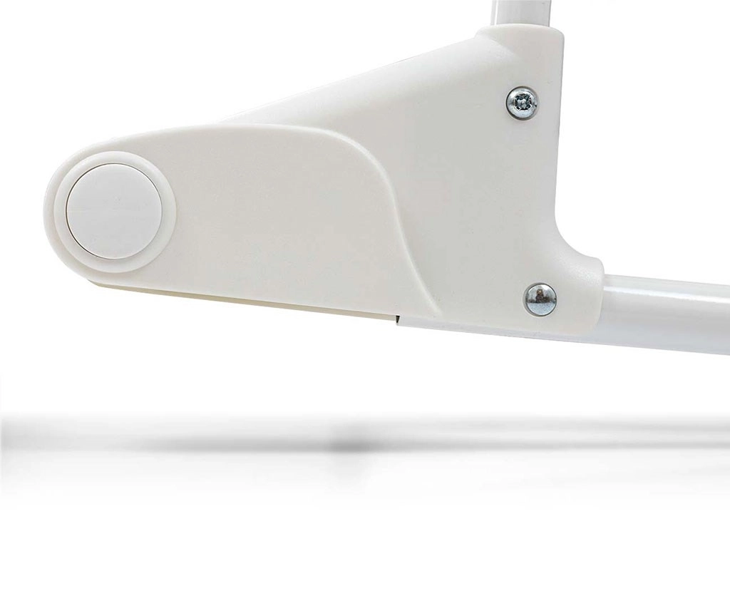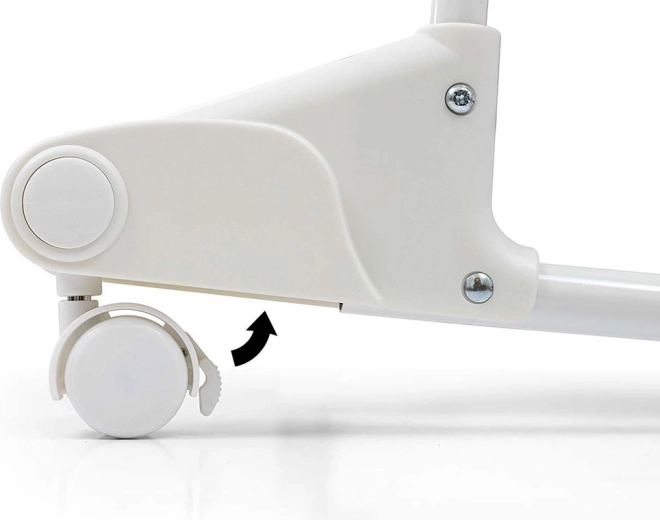 Practică copertină detașabilă și rabatabilă cu două jucării moi din pluș protejează de lumină și oferă stimulare vizuală. Salteluța moale și căptușeala interioară matlasată oferă confort maxim, în timp ce coșul inferior cu două compartimente găzduiește toate accesoriile necesare. Cadru metalic, roți blocabile și picioare antiderapante asigură stabilitate, păstrând în același timp mobilitatea în locuință.