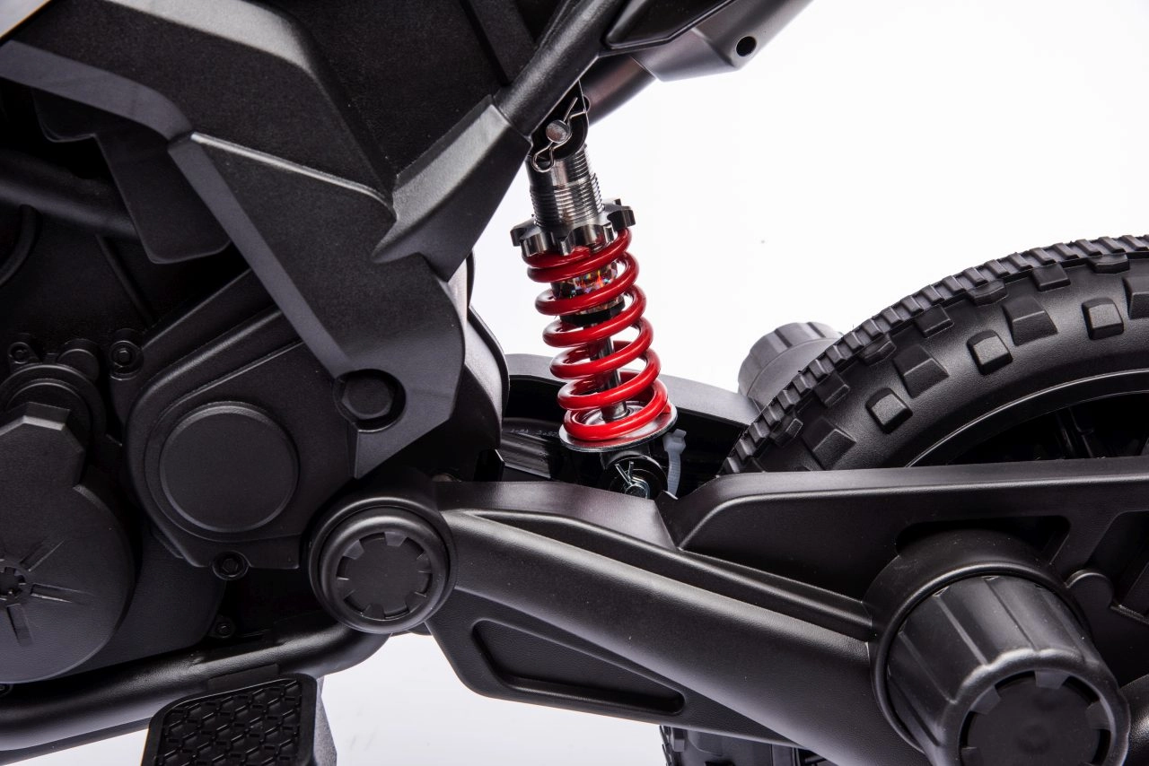 Roțile mari din EVA cu profil mai pronunțat, suspensia spate și farurile LED frontale sporesc confortul și siguranța la conducere. Panoul multimedia cu MP3, USB, Bluetooth și melodii integrate va încânta orice copil cu muzica preferată. Pornirea este comodă, prin buton, iar șeaua moale din piele ecologică oferă confort chiar și la plimbări mai lungi.
