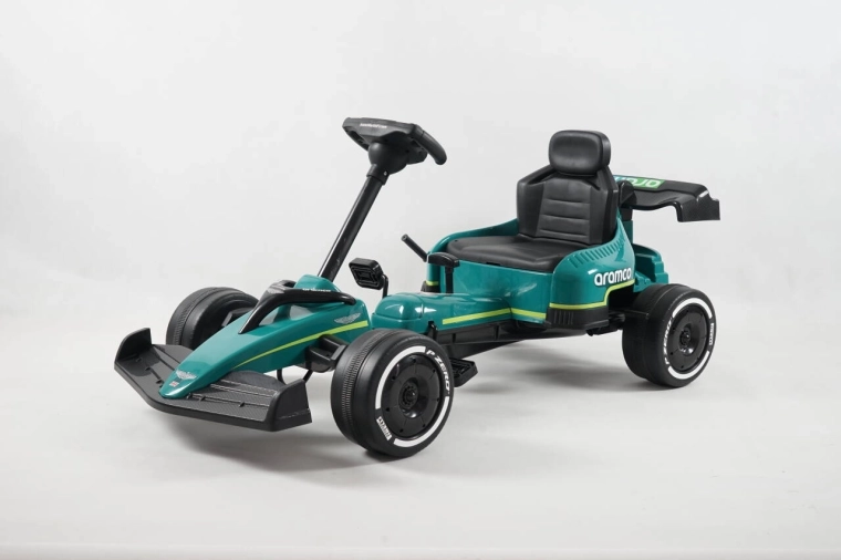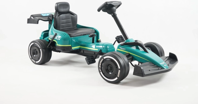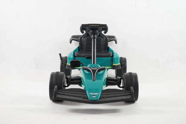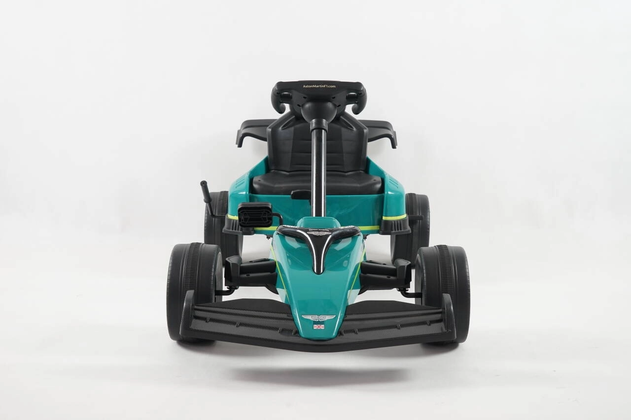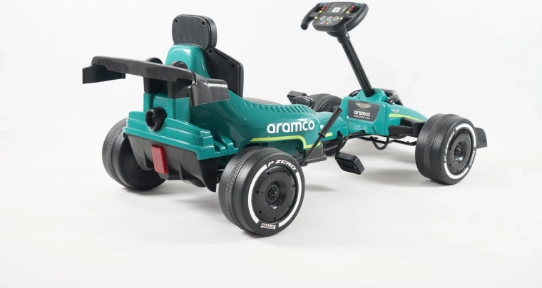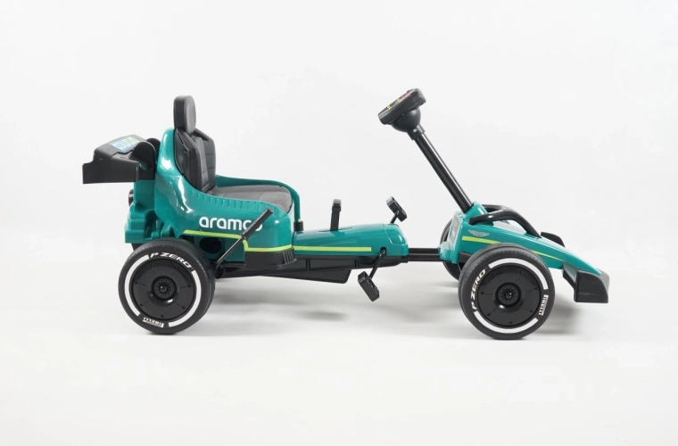 Kartul pentru copii, cu design inspirat de marca ASTON MARTIN, impresionează prin construcția solidă, rularea lină și manevrabilitatea excelentă. Are transmisie pe lanț cu carcasă completă, roți EVA cu rulmenți pentru o deplasare silențioasă, frână de mână și raport pentru mers înainte/înapoi și rulare liberă. Greutatea maximă admisă 25 kg și scaunul sport profilat garantează confort și siguranță.