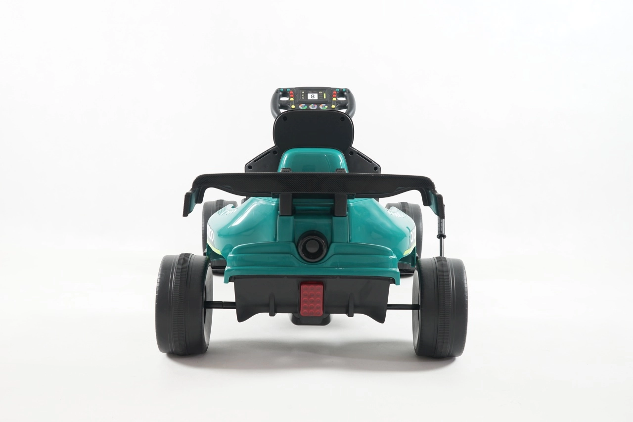 Kartul în culoare verde oferă copiilor o experiență realistă de condus. Datorită transmisiei pe lanț cu cutie complet acoperită, deplasarea este sigură și fiabilă, în timp ce frâna de mână permite o oprire sigură. Roțile EVA cu rulmenți atenuează denivelările și asigură o rulare silențioasă și lină pe asfalt și pe pavaj.