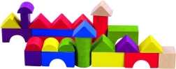 Set de construcție din lemn colorată pentru copii ce conține 100 blocuri de diferite forme, dezvoltă imaginația și motricitatea fină.