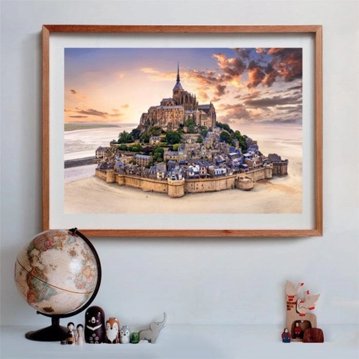 - Motiv realist Mont Saint-Michel, cu detalii bogate și culori intense.