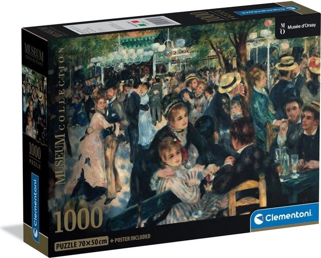 Descoperiți farmecul impresionismului cu puzzle-ul CLEMENTONI Museum Collection. Motivul „Bal la Moulin de la Galette” de Pierre-Auguste Renoir transformă timpul liber într-o relaxare plăcută și, după finalizare, într-o decorațiune stilată. Datorită decupajului atent și cartonului de calitate, piesele se îmbină perfect, iar imaginea se remarcă prin detalii fine și culori intense.