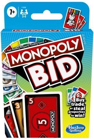 Monopoly Bid este un joc dinamic pentru 2 până la 5 jucători, care concurează în licitații de proprietăți. Cu ajutorul cărților cu bani, participați la licitații pentru a colecta grupuri de proprietăți. Jocul include și cărți de acțiune, care permit un avantaj asupra adversarilor și oferirea de avantaje strategice.