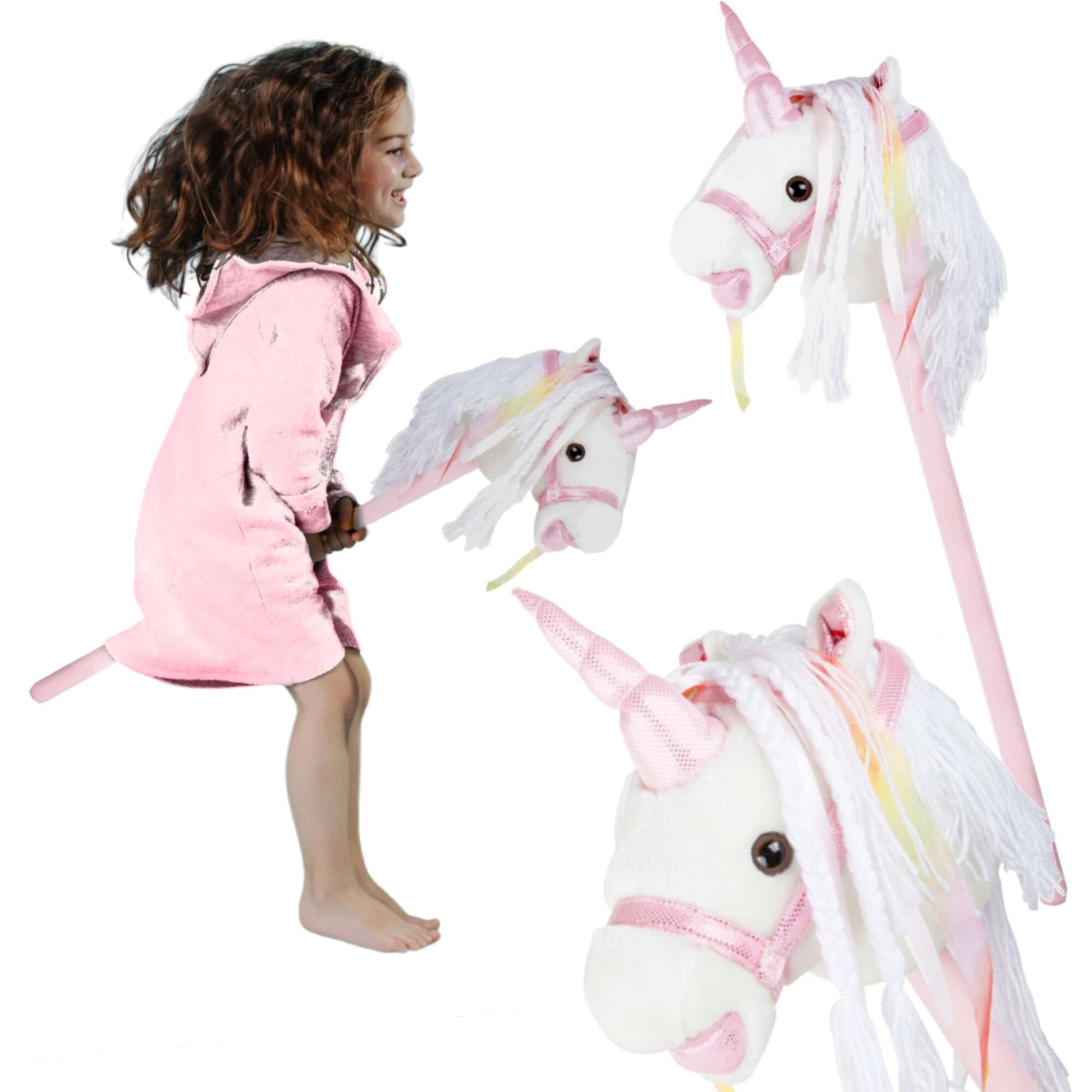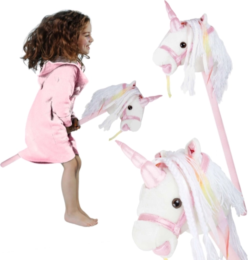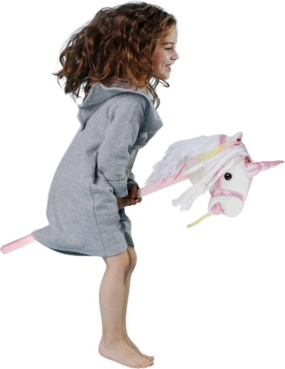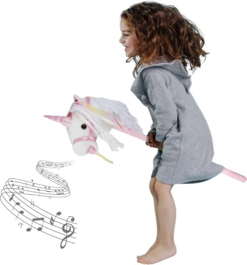 Acest unicorn pe băț susține mișcarea, imaginația și jocul de rol. Plușul fin este plăcut la atingere, iar coama decorativă și panglicile adaugă fiecărei călătorii o atmosferă magică. La apăsarea butonului din ureche se aud sunete realiste de trap și nechezat, care fac jocul de călărie și mai captivant pentru copii.