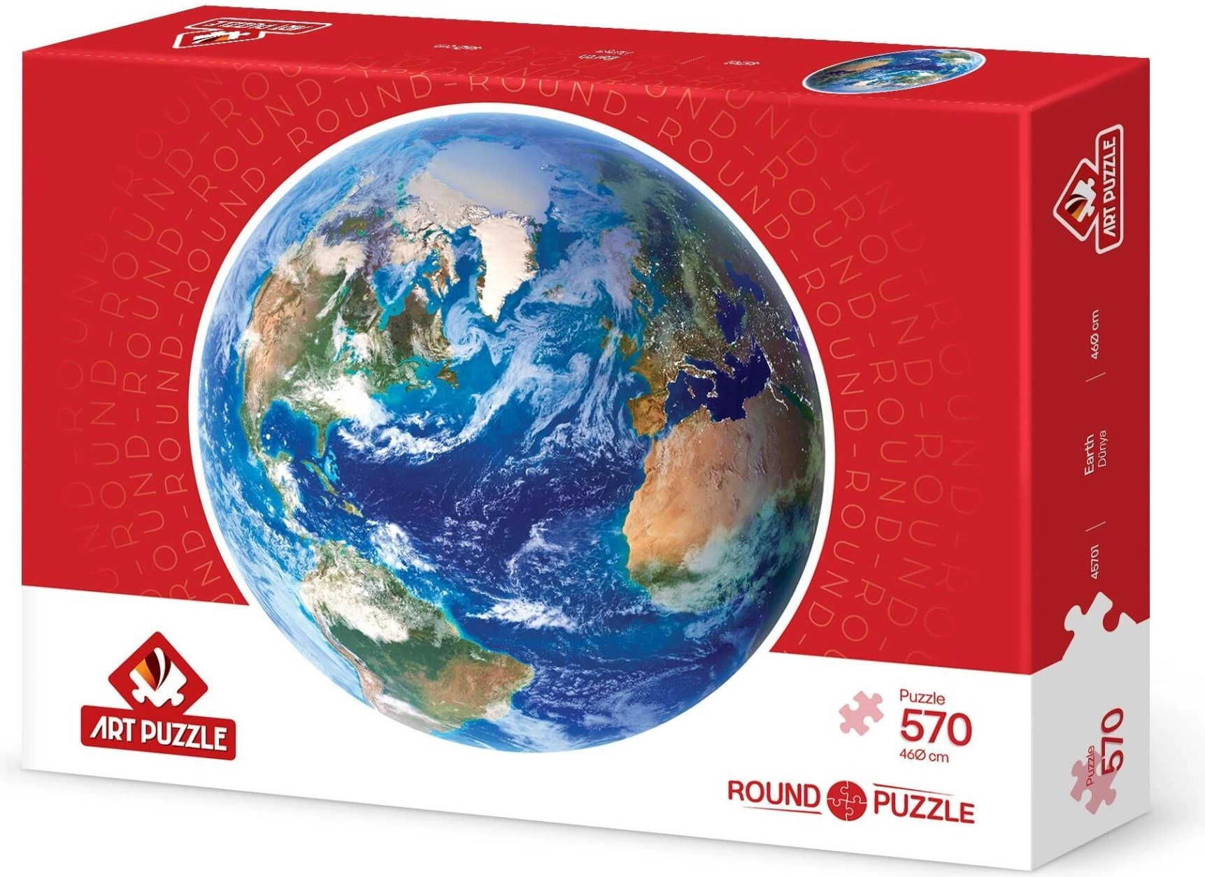 Descoperă frumusețile planetei noastre într-un mod distractiv cu acest puzzle rotund. Datorită diametrului de aproximativ 46 cm și numărului de 570 piese, oferă o provocare grozavă atât pentru copii, cât și pentru adulți. Forma rotundă adaugă o nouă dimensiune asamblării, iar motivul detaliat al Pământului va încânta orice iubitor de geografie și puzzle-uri.