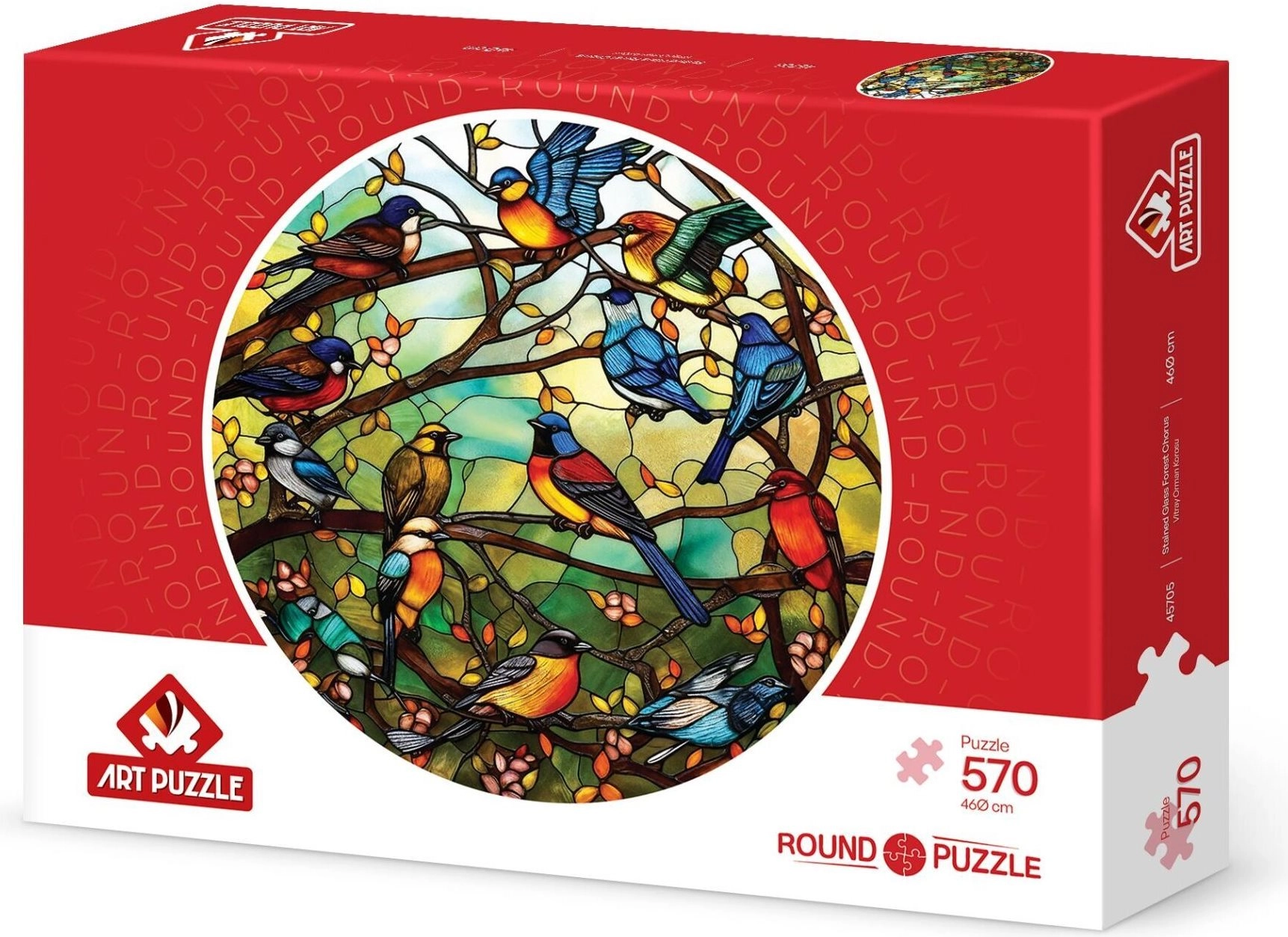 Descoperă plăcerea unică de a asambla un puzzle rotund cu motivul vitraliu Corul pădurii. Setul cu 570 de piese îi va încânta pe iubitorii de provocări și ilustrații frumoase, iar după finalizare va crea o decorațiune impresionantă cu diametrul de aprox. 46 cm.