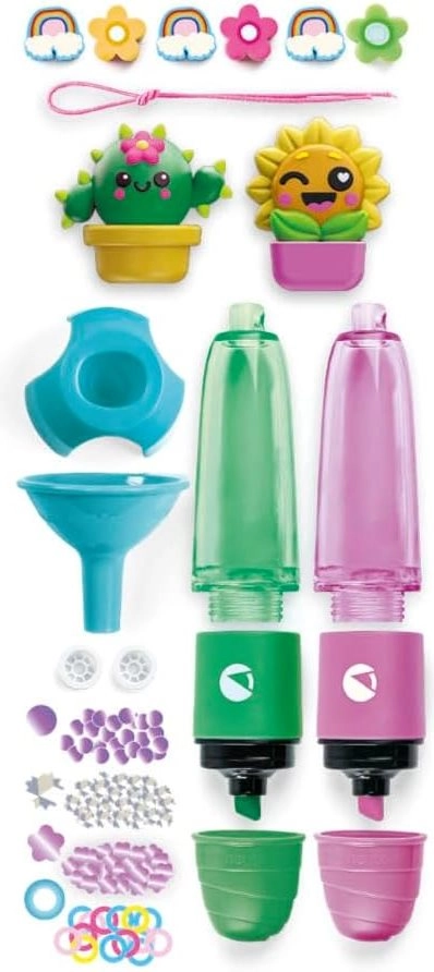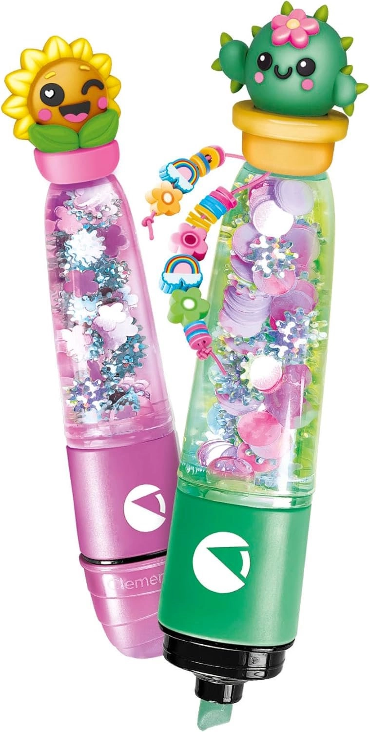 Cu acest set, copiii asamblează și decorează două evidențiatoare unice, în ale căror carcase transparente pot adăuga sclipici, mărgele și decorațiuni plutitoare. Toppers-urile drăgălașe în formă de cactus și floarea-soarelui transformă fiecare scriere într-un joc și evidențierea într-o distracție cu stil.